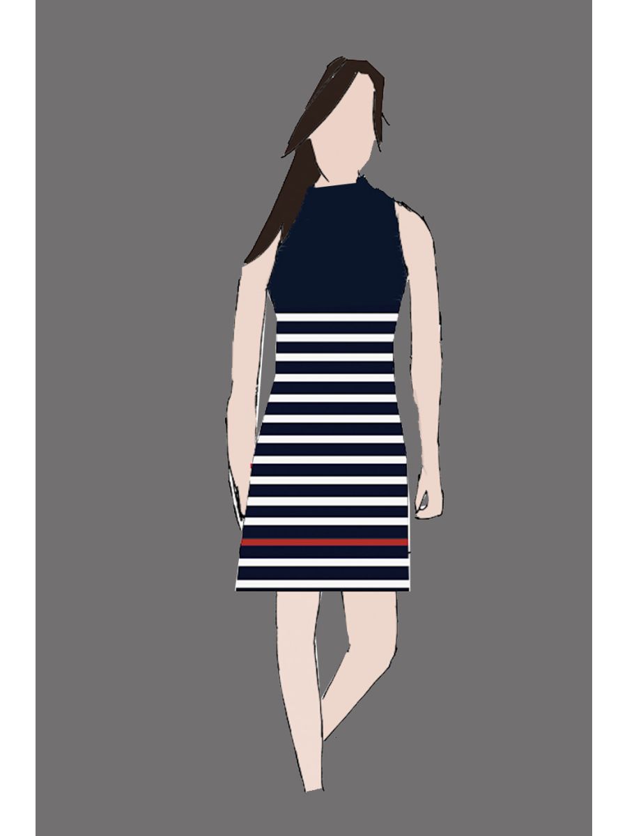 182085 - Uniform Dress Ladies Tee Stripe Navy & White (Pool Bar)